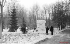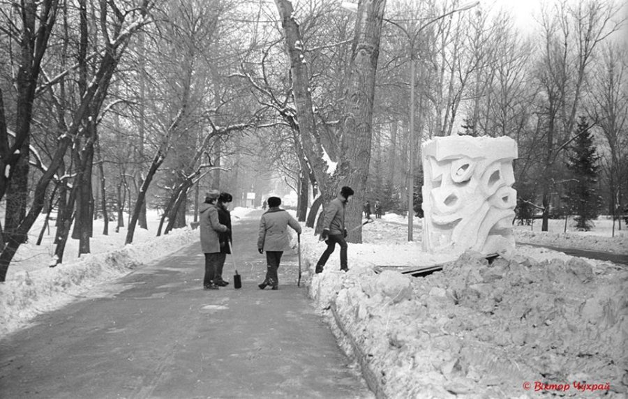 В інтернеті опублікували світлини виготовлення величезних снігових скульптур в Луцьку в 1988 році.