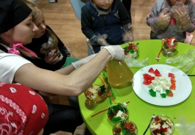 "FigliMigli" завжди дивує своїх маленьких відвідувачів. Тож у неділю дітлахам запропонували цікаво й корисно провести час. Так, малечу вчили кулінарити. А щоб навчання було цікавим вибрали оригінальну страву – десерт з желе.