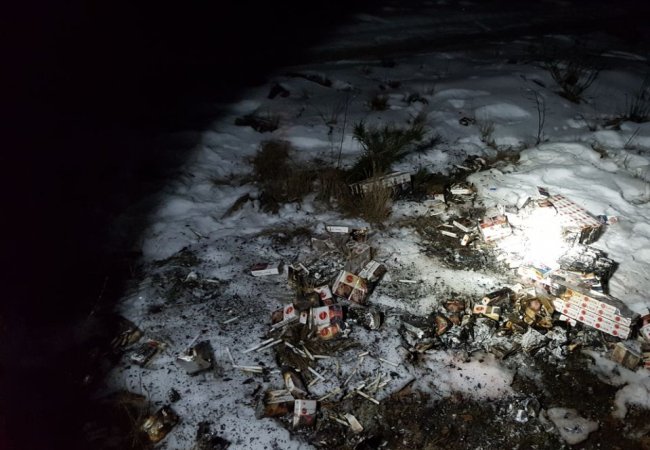 На Волині контрабандисти, тікаючи від прикордонників, спалили сигарети. ФОТО