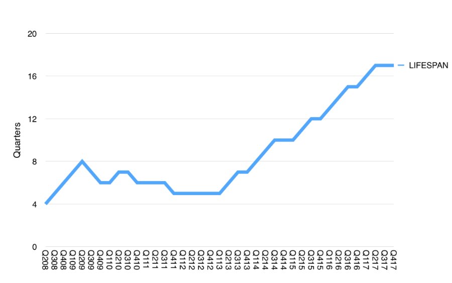 Аналітики Asymco визначили, що середній термін використання пристроїв Apple становить чотири роки і три місяці, повідомляється в звіті компанії.