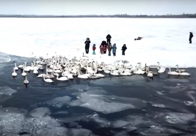 Як на знаменитому волинському озері зимують лебеді. ВІДЕО