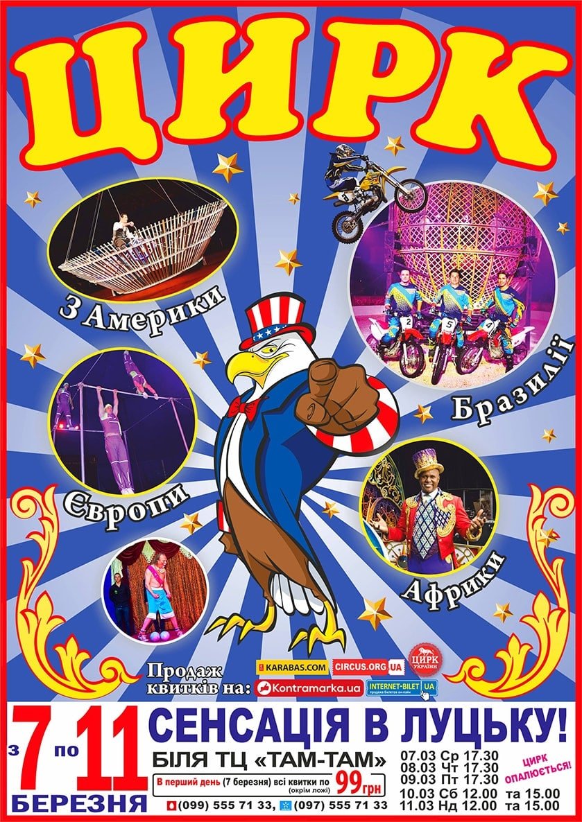 Лише з 7 по 11 березня лучани мають унікальну нагоду побачити захопливі виступи артистів цирку. Так, поблизу гіпермаркету «Там Там» показуватимуть майстерність гості з різних континетів.