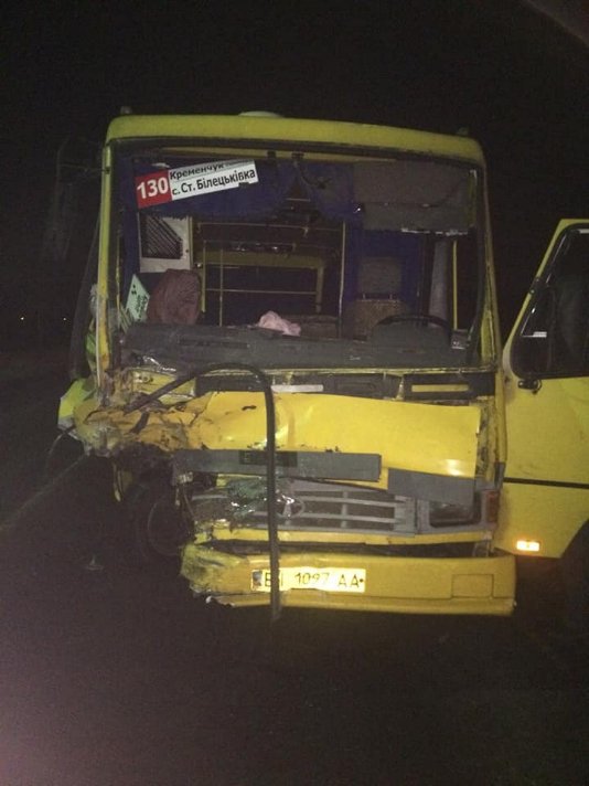 Автобус їхав у Кременчук та зіштовхнувся з Renault Trafic. Від отриманих травм помер 21-річний пасажир автомобіля Renault.
