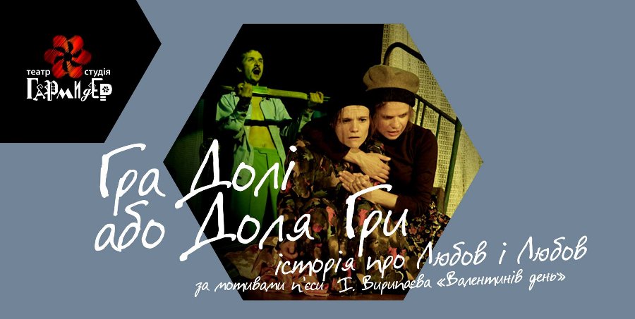 Що обіцяють: театр «ГаРмИдЕр» запрошує переглянути історію про Любов і Любов «Гра Долі або Доля Гри» за мотивами п’єси культового Івана Вирипаєва «Валентинів день». Ця історія є продовженням популярної мелодрами за п’єсою Михайла Рощина «Валентин і Валентина». От тільки від мелодрами у виставі залишилося мало.