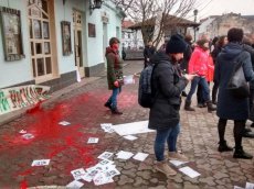 В Ужгороді група невідомих облила фарбою учасниць Маршу за права жінок і зірвала акцію. Блогери пишуть, що серед нападників були члени організації Карпатська Січ.