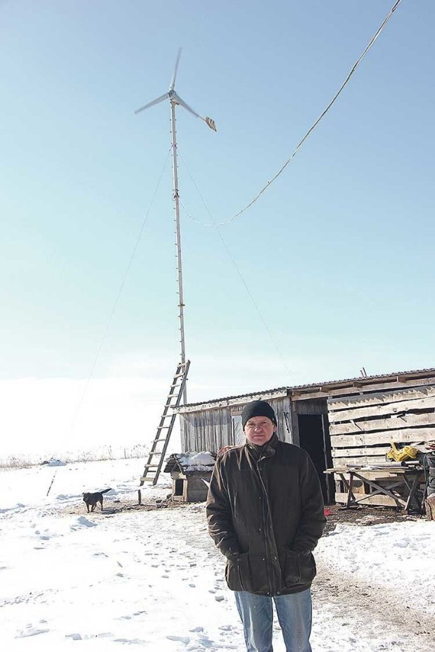 І ось 12 років минуло з того часу. Чоловік хату звів, уже третю зиму живе з п’ятьма дітьми (троє з них — неповнолітні) у новобудові. А як вирішив питання зі світлом, то можна по вітряку здогадатися.