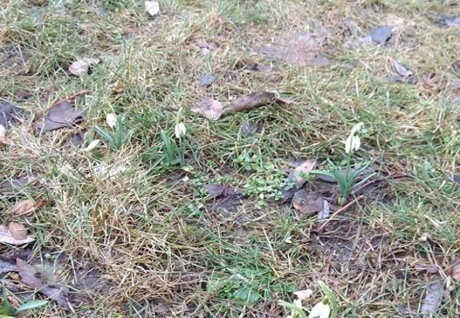 "Перші підсніжники біля луцького кафедрального собору Святої Трійці", - йдеться в підписі до світлин.