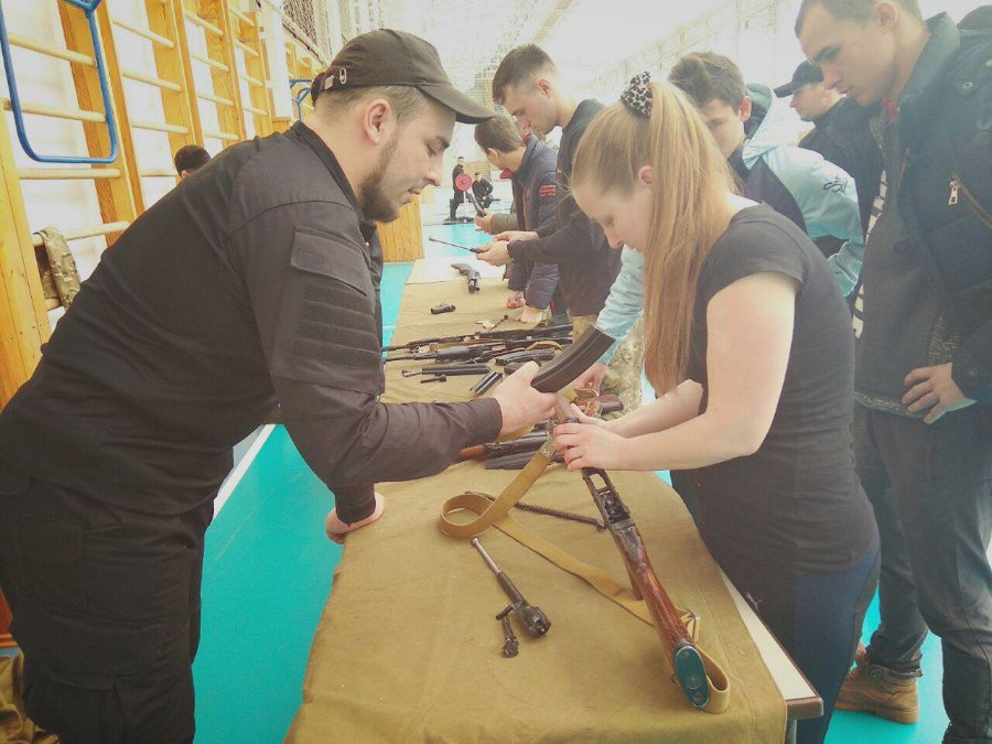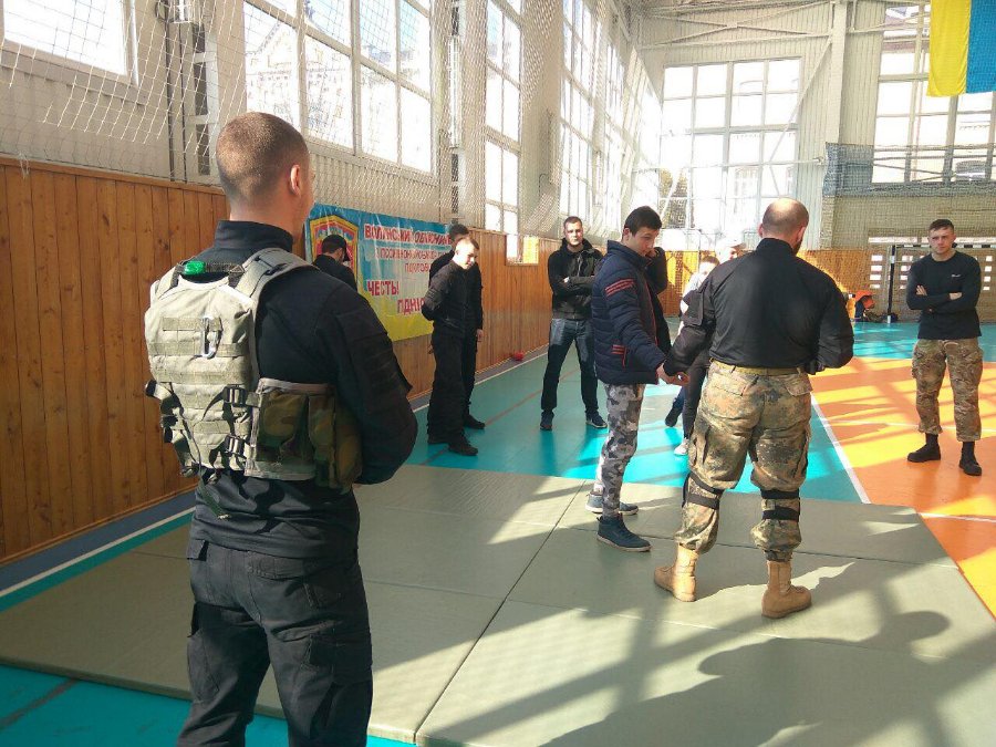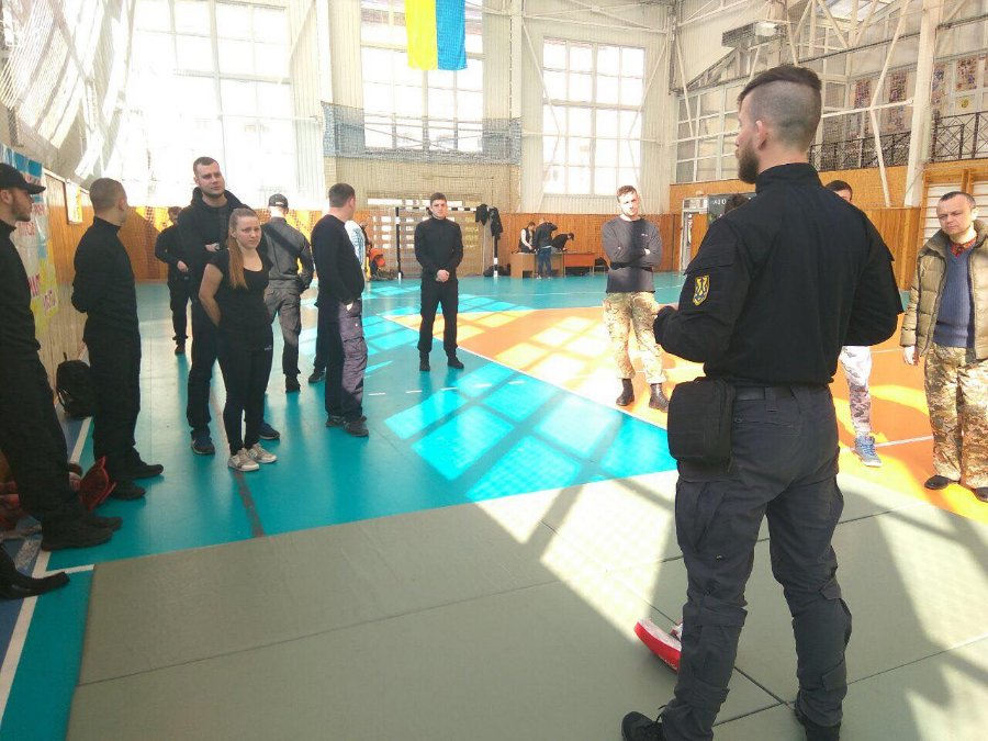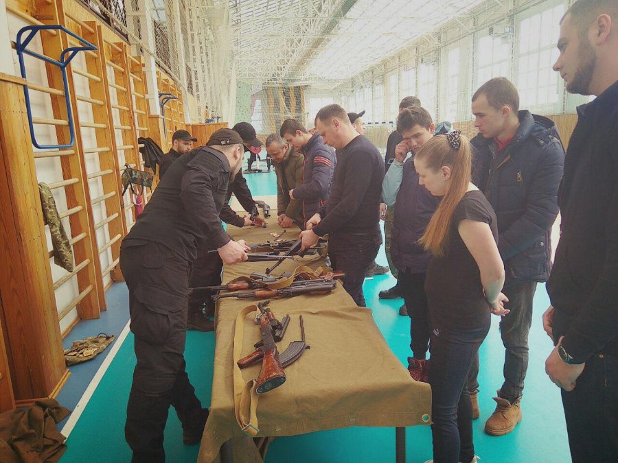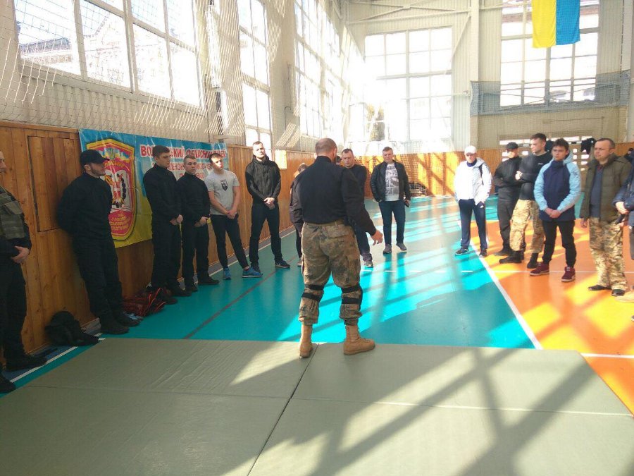 Спортзал військового ліцею умовно поділили на секції. Для відвідувачів вишколу підготували зону із занять самообороною, збіркою та розбіркою зброї, зоною навчань із меддопомоги, секцію із інформацією про націоналізм та діяльність волинської та всеукраїнської організації та зоною для "силачів" (із тренажерами та штангами).
