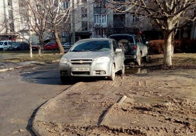 Недобросовісні паркувальники перетворили газон у дворі на вулиці Кравчука 22-24 у Луцьку на суцільне місиво.