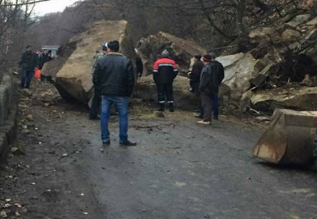 На Закарпатті шматок скелі перегородив дорогу до села. ФОТО