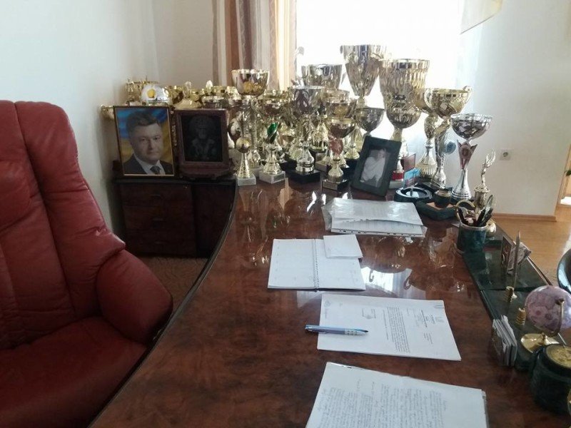Сергій Яручик пояснив, що на його робочому столі нагороди та кубки, здобуті спортсменами за останні сім років, якими він дуже пишається.