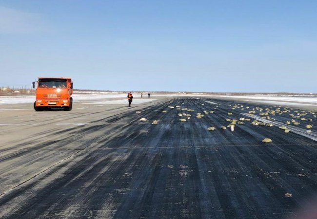 "Це злітно-посадкова смуга аеропорту в Якутську. Так, це золото. Так, 9 тонн. Велика частина десь в полях в окрузі", - прокоментували фото в Mash.