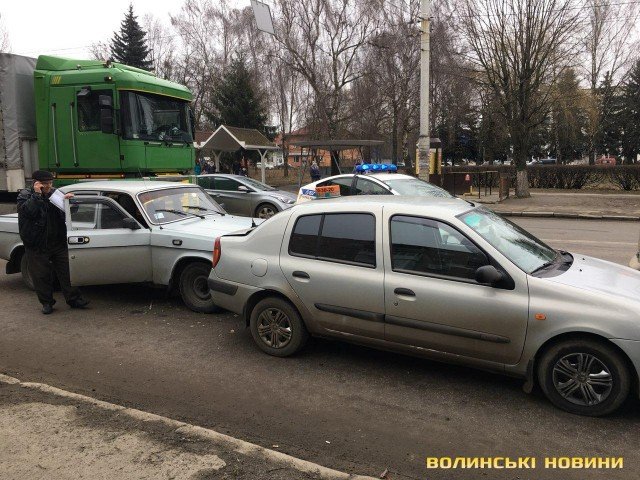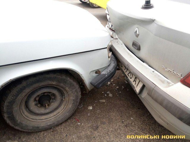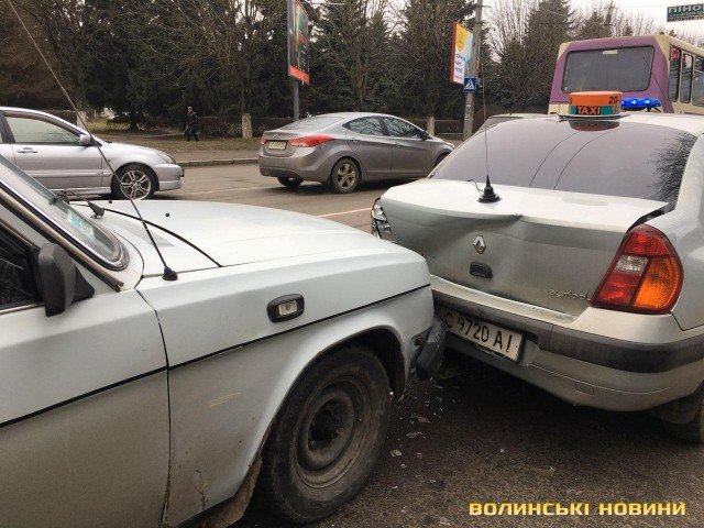 Так, біля світлофора зітнулися Citroen, таксі Renault та «Волга». Як розповів водій таксі, його авто стояло «на світлофорі», коли у нього в’їхала «Волга», тож його Renault протаранило Citroen.