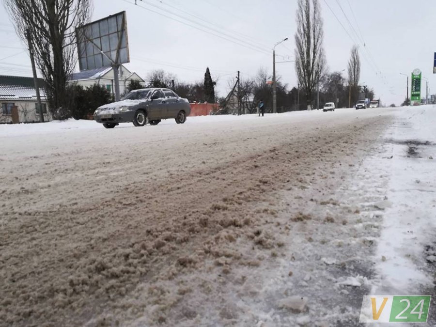 Дороги на Богдана Хмельницького посипали сіллю, "каша" на проїжджій частині розтала.