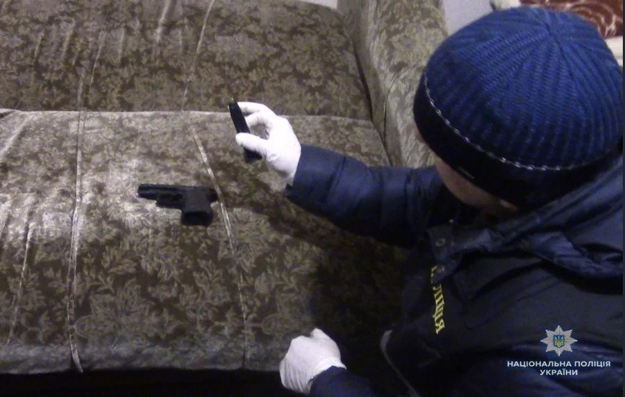 З місця пригоди поліцейські вилучили пістолет «Zoraki» з набоями, декілька молотків, мобільні телефони, гроші, медикаменти, тощо.