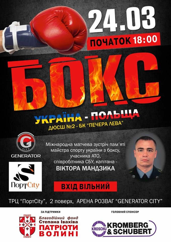 Що обіцяють: міжнародна боксерська матчева зустріч пам'яті майстра спорту України з боксу, учасника АТО, співробітника Служби безпеки України, капітана Віктора Мандзика