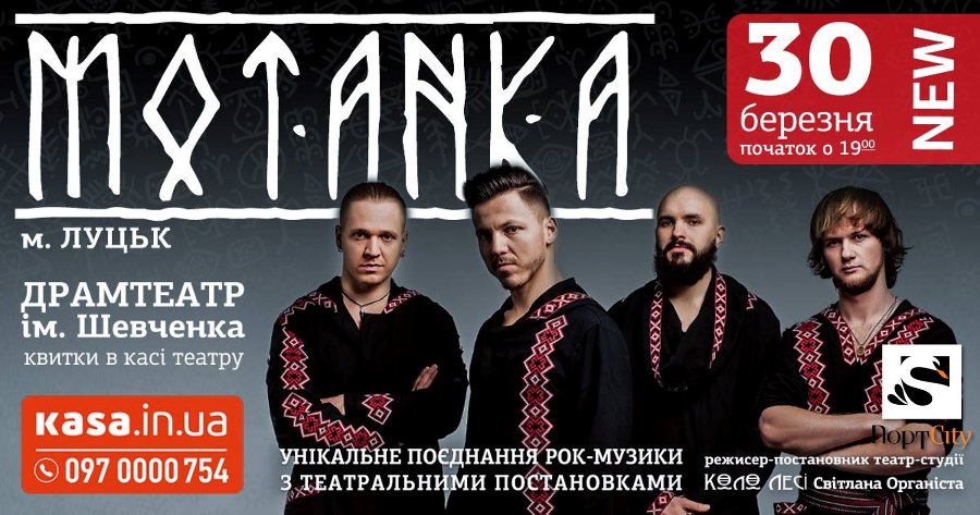 Незабаром у Луцьку відбудеться неймовірне мистецьке дійство – виступ гурту «MOTANKA». Познайомитися з музикантами та послухати декілька композицій можна буде у суботу, 24 березня о 17 годині на першому поверсі торгово-розважального центру «ПортCity».