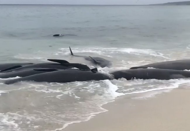 Понад 130 дельфінів-гринд викинулися на берег затоки Хемелін на південно-західному узбережжі Австралії.