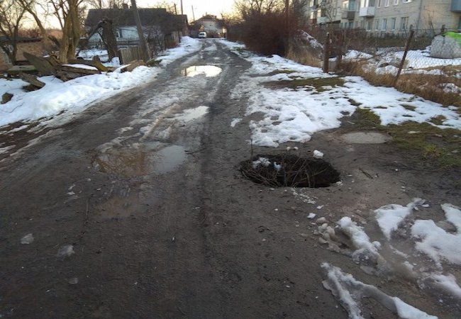 «На вулиці Гірна просто серед дороги - діра, в яку може влетіти машина, або людина. Прошу комунальників звернути увагу. Мешканці вже напхали туди гілляк, аби було видно небезпеку», - йдеться у повідомленні.