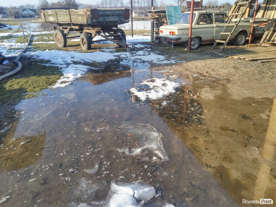 У селі Дерно в Ківерцівському районі пізня весна спричинила підтоплення подвір'їв та вулиць.