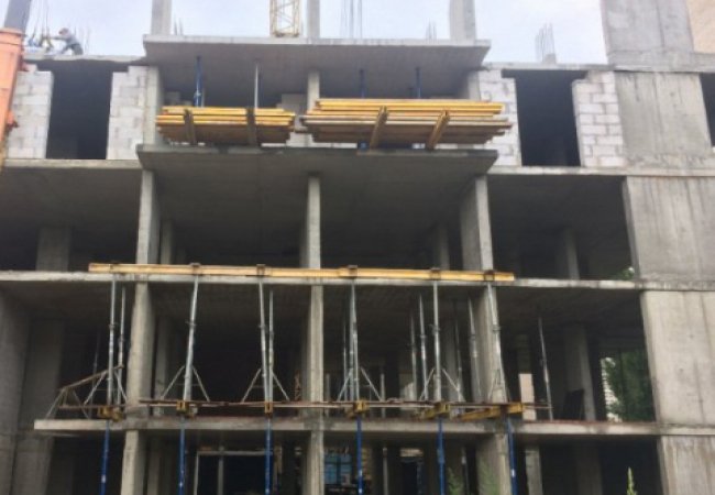 Хоча вже восени 2017 року роботи частково відновили. Зокрема, почали вимуровувати стіни перших поверхів.