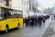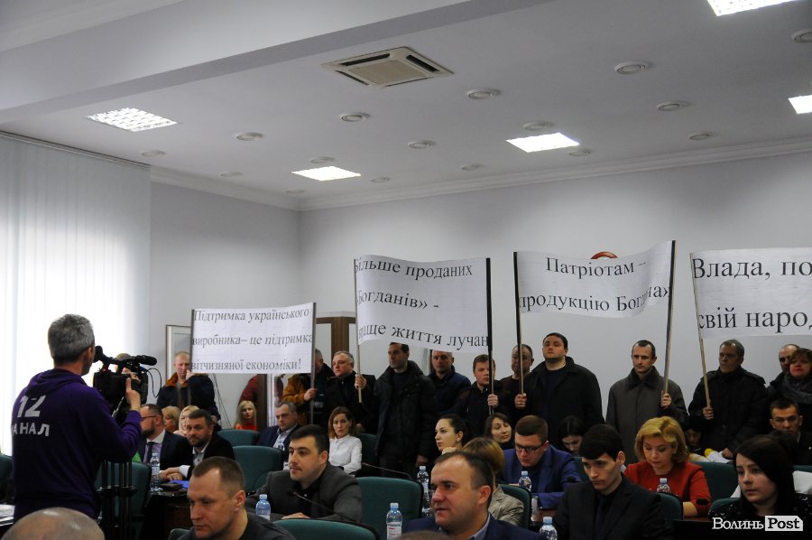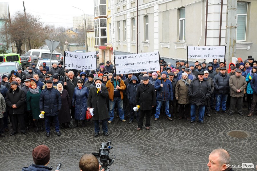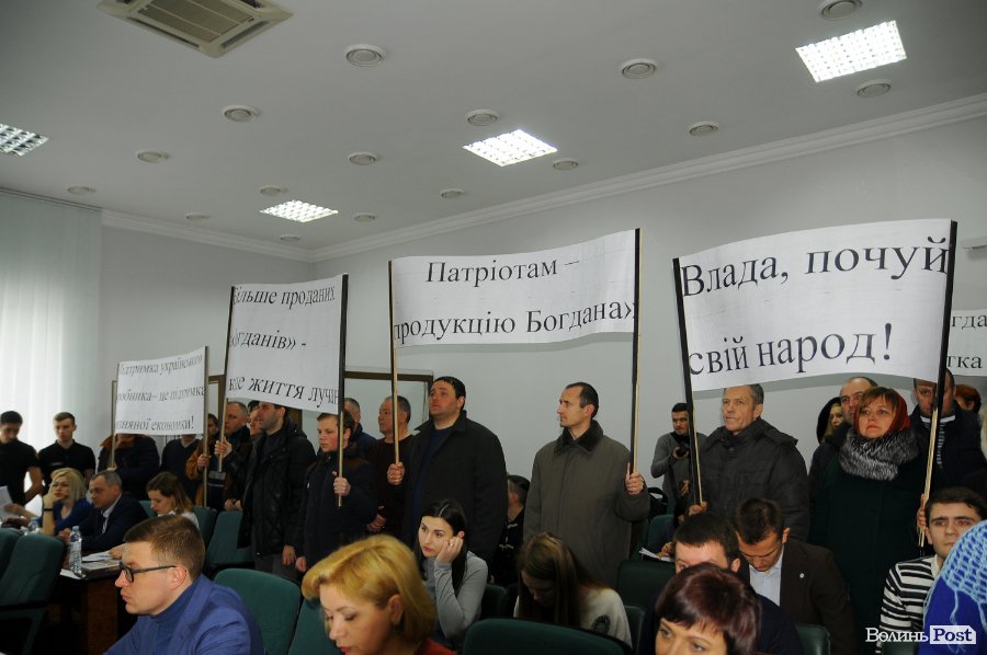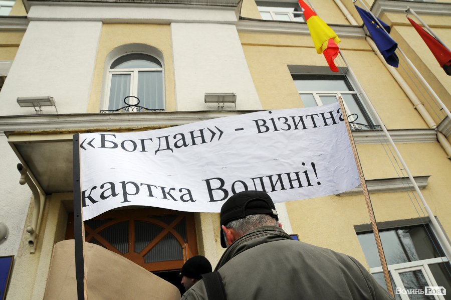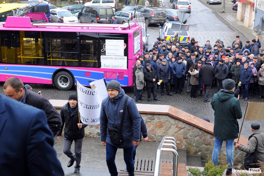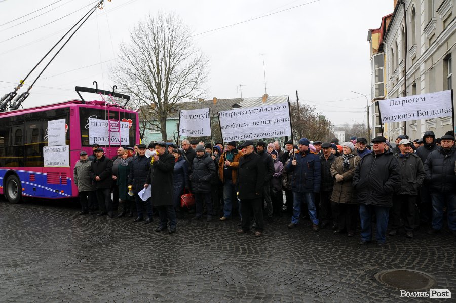 Близько 200 працівників луцького автозаводу "Богдан Моторс" прийшли до міської ради з вимогою купувати тролейбуси українського виробництва.