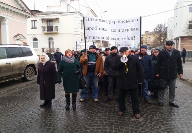 Учасники пікету тримають в руках плакати на підтримку українського виробника та української економіки.