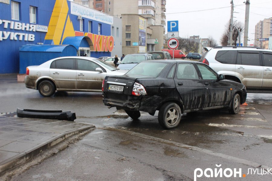 У Луцьку біля торгівельного центру сталась аварія, у якій зіткнулось два автомобілі.