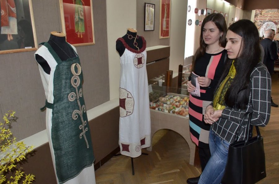 В контексті виставки представлена колекція одягу «Трипільські спогади», викладача Нетішинської міської художньої школи Тетяни Погуральської, розроблена майстринею за мотивами трипільських символів, що використовуються і в писанковому розписі.