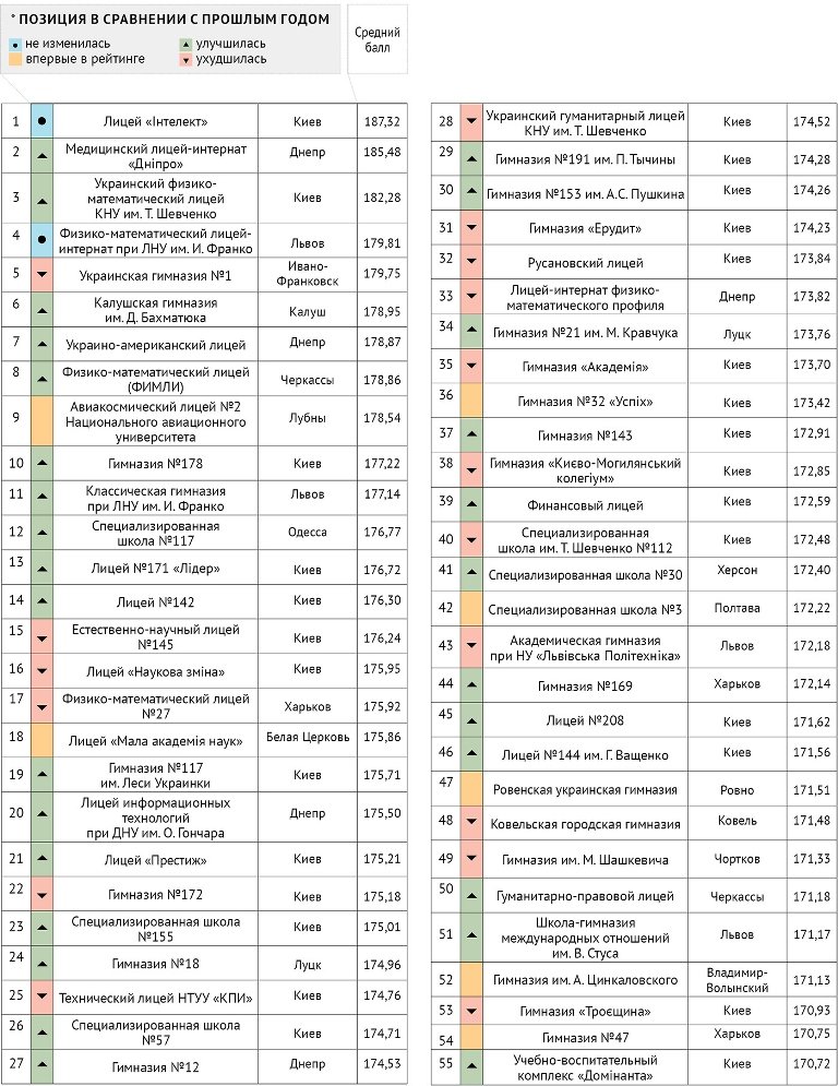Загалом рейтинг, порівняно із попереднім роком, оновився на 30%, як результат - поповнився 30 новими школами. Наприклад, Володимир-Волинська гімназія ім. О. Цинкаловського піднялася на 470 пунктів: учителі й учні вивели її з 522-го місця у 2016 році на 52-ге в 2017-му.