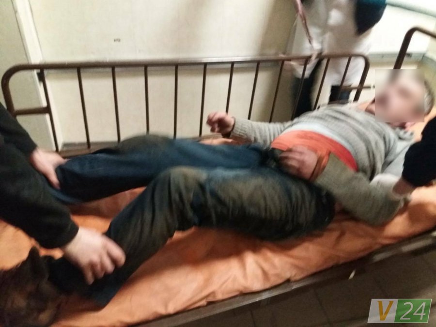 Чоловіка посадили у карету швидкої, відвезли у відділок поліцїі, а потім у наркодиспансер. Він знову почав агресивно поводитись, тож довелось прив'язати його до каталки.