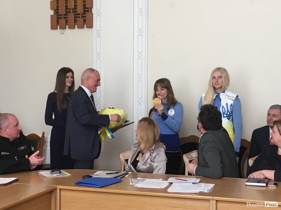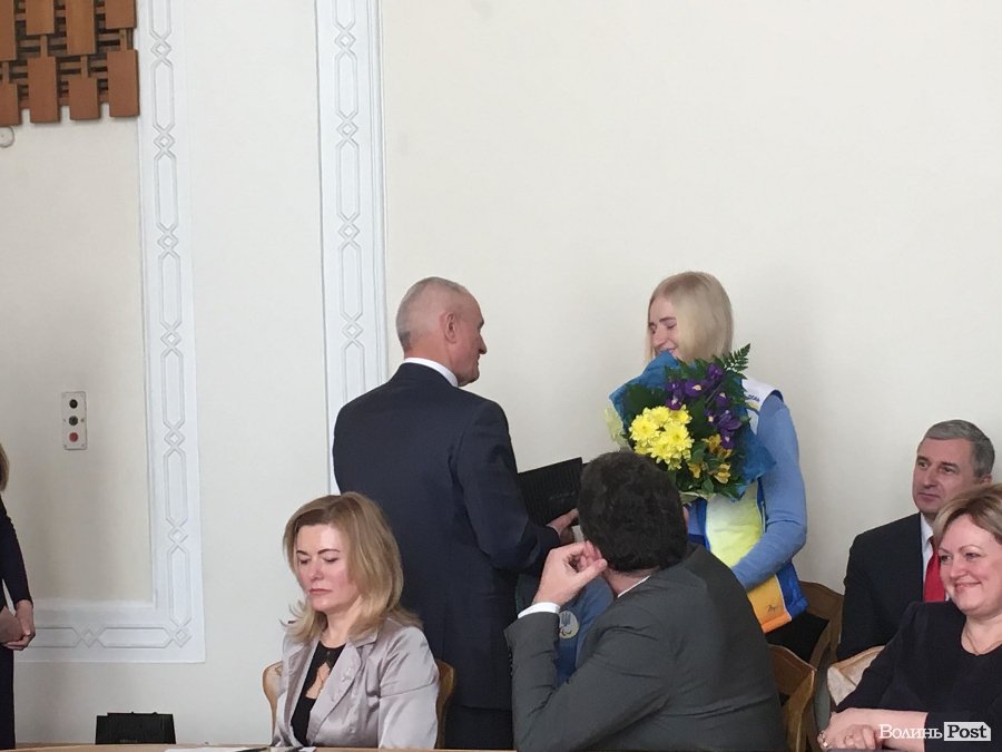 Савченко вручив дівчатам почесні грамоти та подарунки, а також великі букети із квітами. Він сказав, що волиняни не просто їм вдячні, а надзвичайно пишаються землячками. Присутні зустріли парлімпійок гучними оплесками.