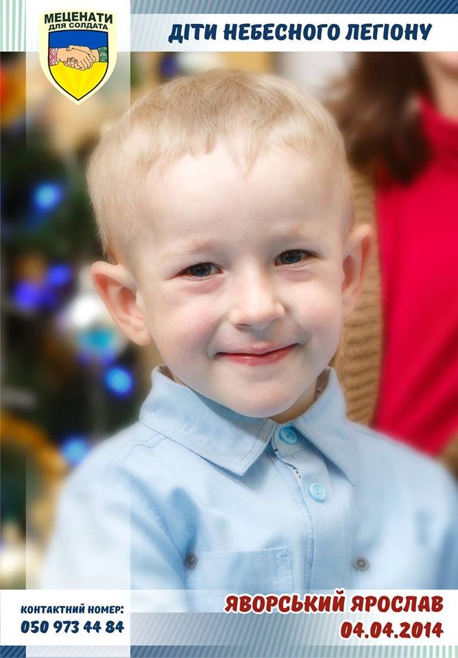 Згадувати про татка Ярославчику доведеться тепер лише по фото і він ніколи більше не почує рідний батьків голос, та хлопчик знає, що його батько – Герой, який пішов на війну, аби захистити країну і вберегти рідний дім. Війна триває ось уже четвертий рік і бойові дії на Сході нашої країни не припиняються. Є, нажаль, і нові загиблі, і нові Герої сьогодення. Тому наш обов’язок перед такими родинами лишається незмінним – підтримка моральна та, по можливості фінансова. Бо цим родинам так важливо, аби про них пам’ятали. Тож давайте допоможемо зробити для дитини Героя Небесного Легіону свято в день його народження, аби він відчув турботу від оточуючих, і щоб його татусь міг тішитись на небі, що його син не на самоті в таке важливе для кожної дитини свято!
