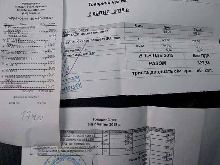 За його словами, для бійців купили проводку, розетки, шурупи, шліфкруги для болгарки, фарбу, щітки для фарби, коробки для проводки, ізострічку, автовимикакачі та інші необхідні речі. На ці потреби волонтери використали 2,245 тисячі гривень.