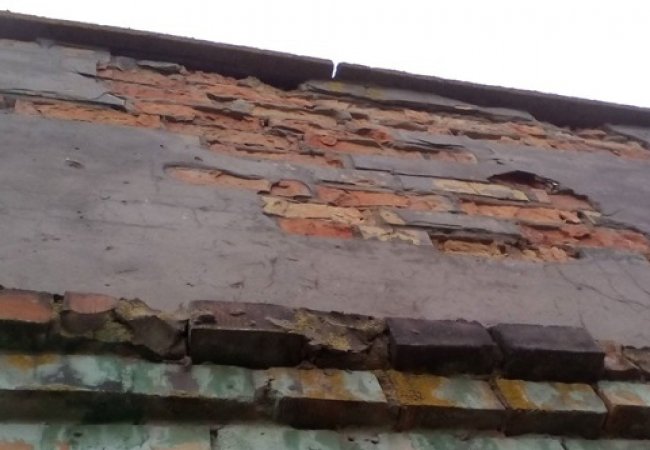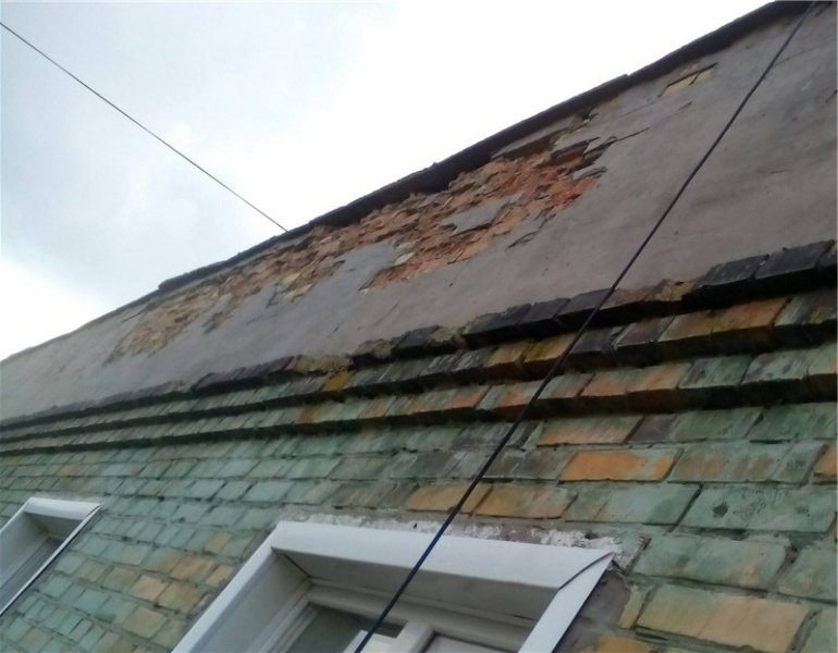 Цегла обсипається і летить на балкони і людям на голови. Стан будівлі - аварійний. У квартирах затікає стеля. Ремонт люди роблять своїм коштом.