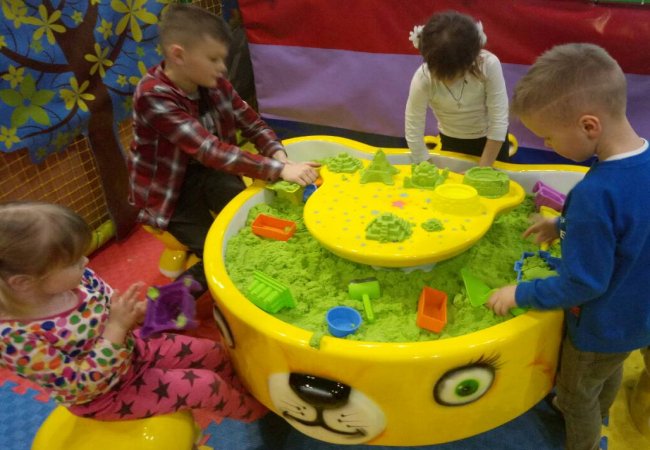 Відтепер у дитячому розважальному центрі «FigliMigli» можна погратися з кінетичним піском. Велику пісочницю з пасочками та іншими забавами поставили у ігровій зоні.