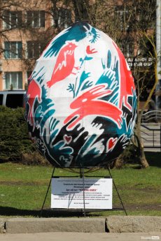 Куратор проекту Тетяна Мялковська згадала, що вперше величезні писанки встановили на Театральному майдані три роки тому. «Основна ідея цього проекту – донести сучасну інтерпретацію традиційних символів Великодніх писанок», - додала жінка.