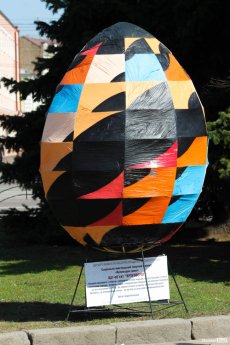 Арт-об’єкт «Геометрія», автором якого є Алла Жупанюк (ГО «Чарівний пензлик») розповіла, що ця писанка має таку назву, тому що геометрія – це той тонкий простір, у якому усі лінії є рівними, а людина цю симетрію руйнує та частково засмічує.