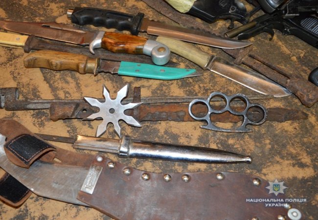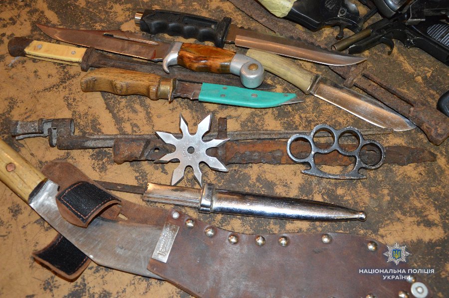 На фото є два ножі, які не відносяться до холодної зброї. Також пневматичні гвинтівки з калібром 4.5 мм, а також пневматичні пістолети є дозволеними, згідно з Законом України.