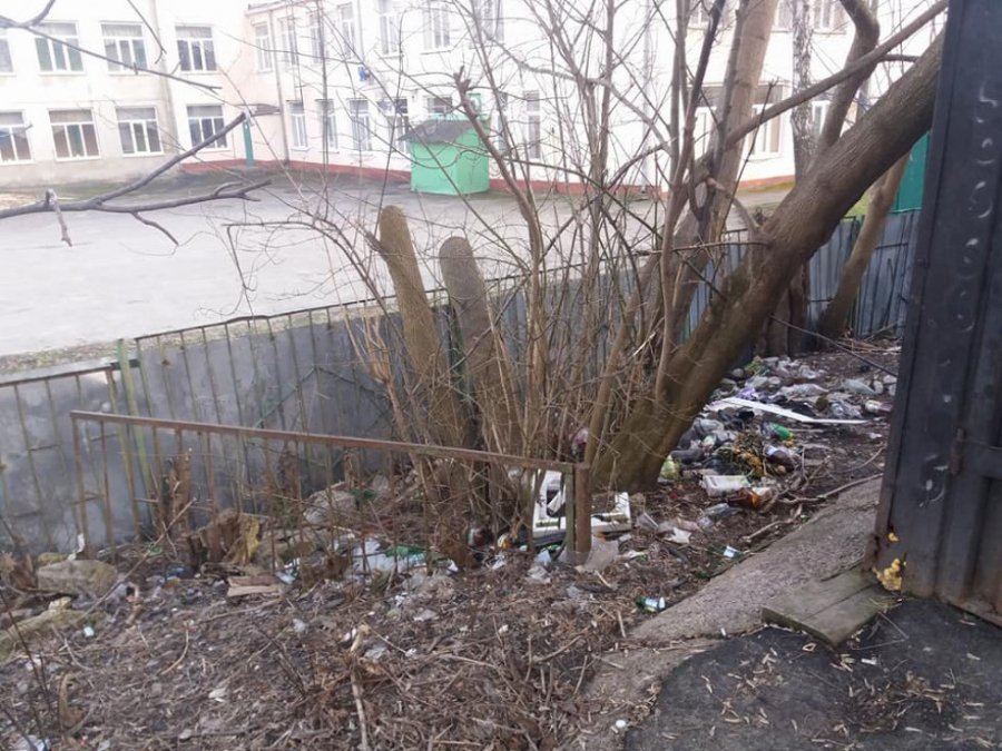 Біля навчального закладу в Луцьку – купи сміття