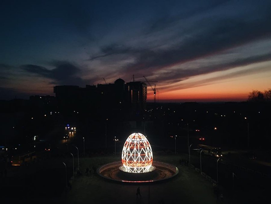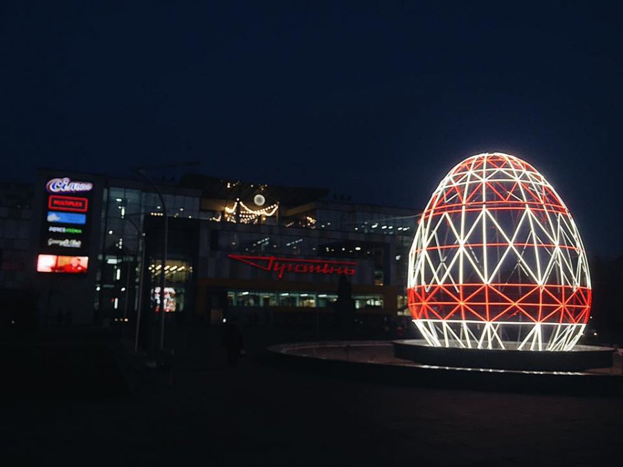 На майдані поруч розважальним центром «Промінь» у Луцьку засяяла велетенська писанка.