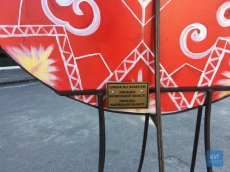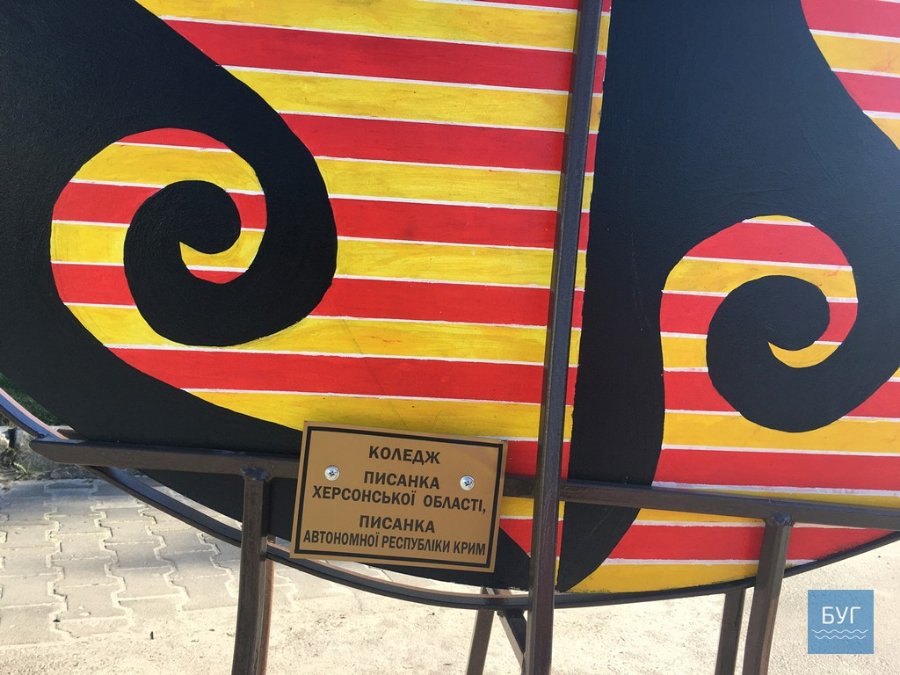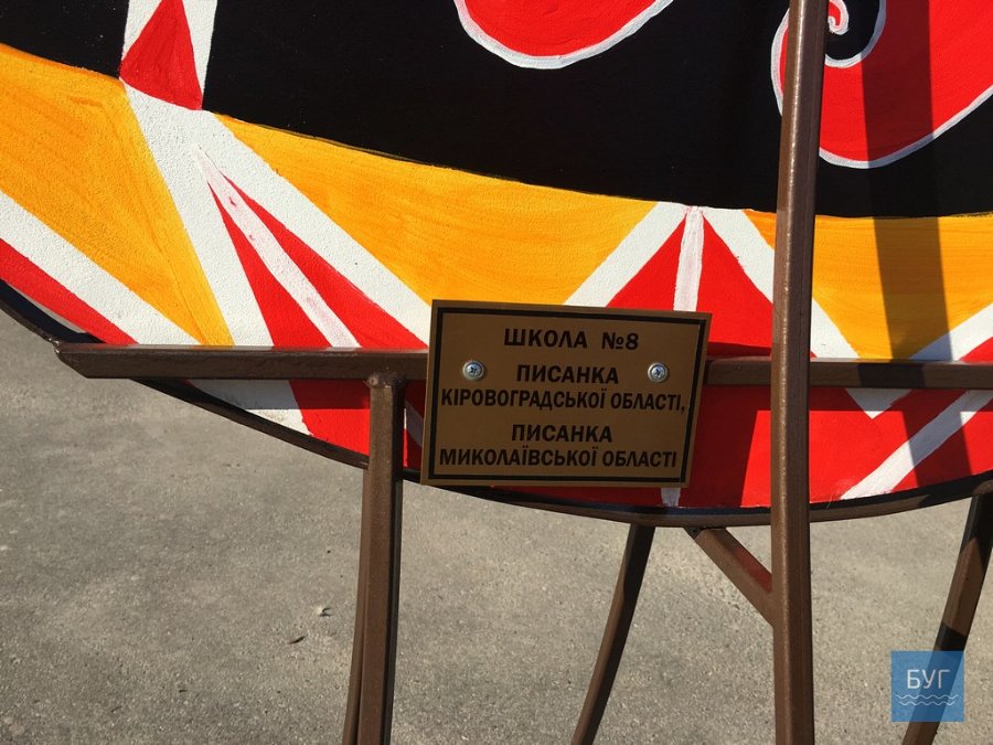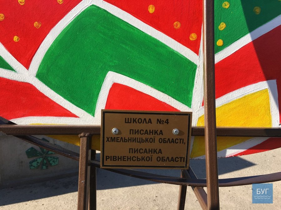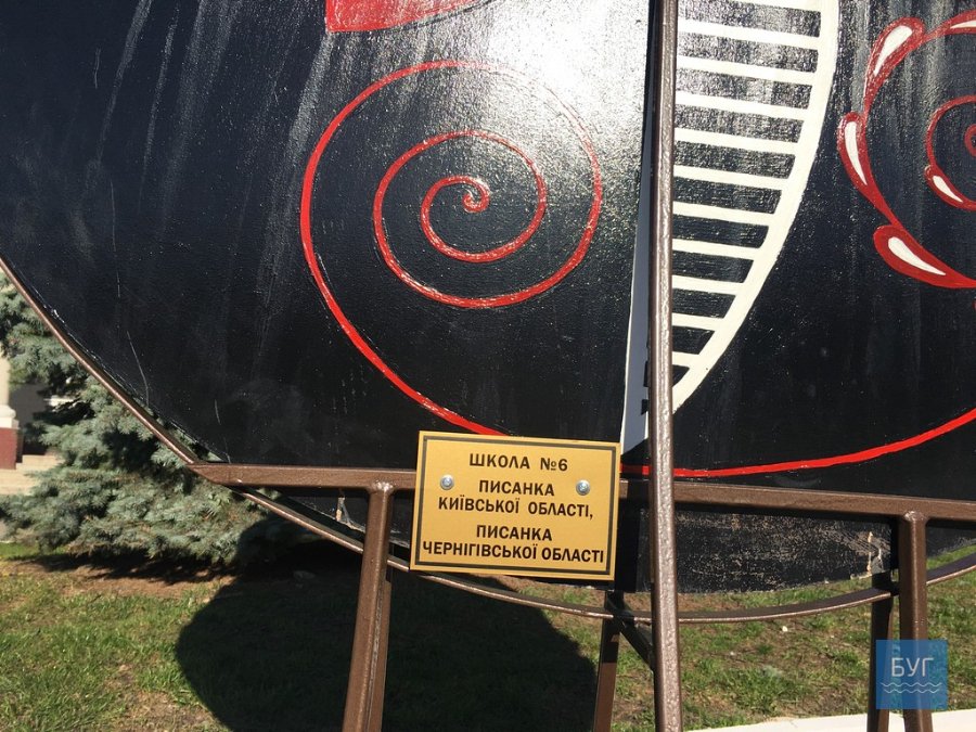 Усього на центральній площі міста 12 плоских писанок. На кожній є табличка, яка вказує учасника конкурсу.