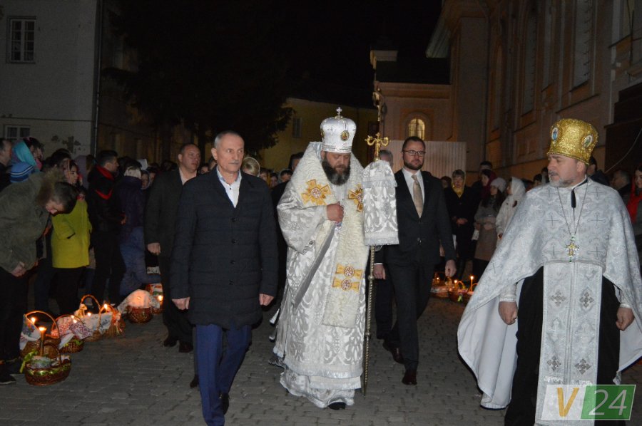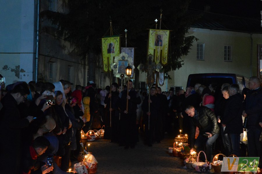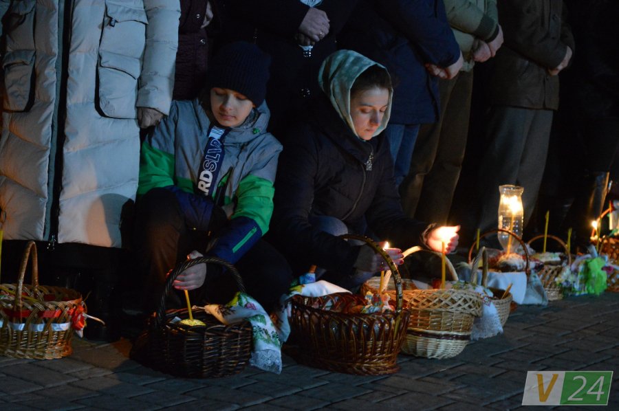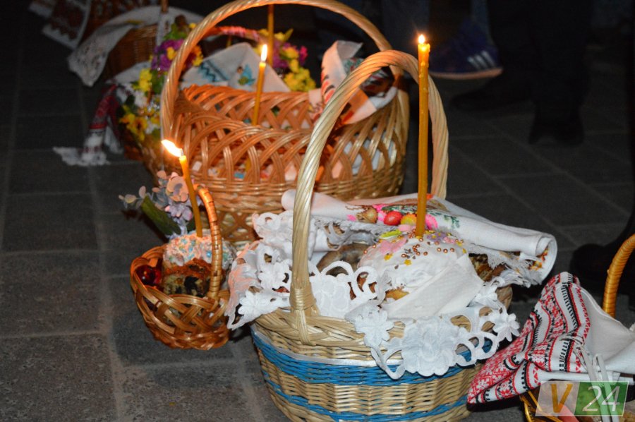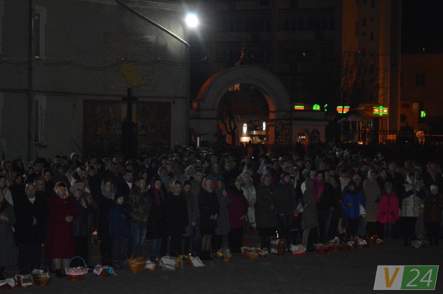 За традицією, духовенство тричі обійшло храм навкруги з молитвами та піснями. За останнім разом священики освятили кошики вірян та привітали їх з найбільшим християнським святом.