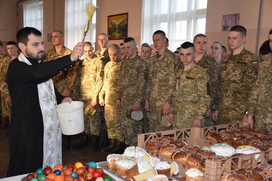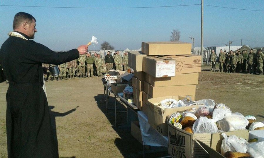 Військові капелани та священики освятили пасхальні кошики бійців із 14-ої окремої механізованої бригади Рівненському військовому полігоні та у частині у Володимирі-Волинському.