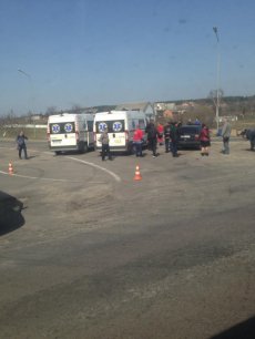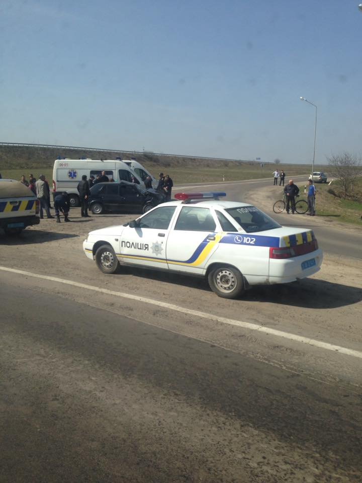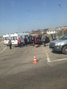 З фото видно, що на місці працює аж дві карети швидкої допомоги. Окрім того, помітно, що поблизу місця події в кюветі знаходиться легковик.