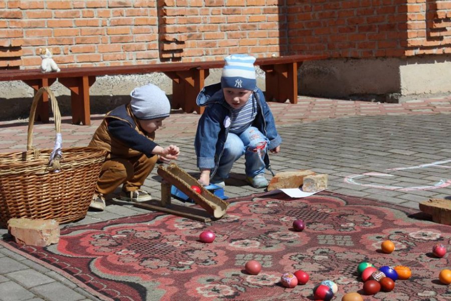 Також дітлахи мали змогу побачити українські традиції, втілені у великодніх забавах.