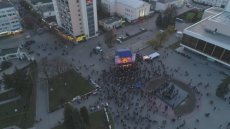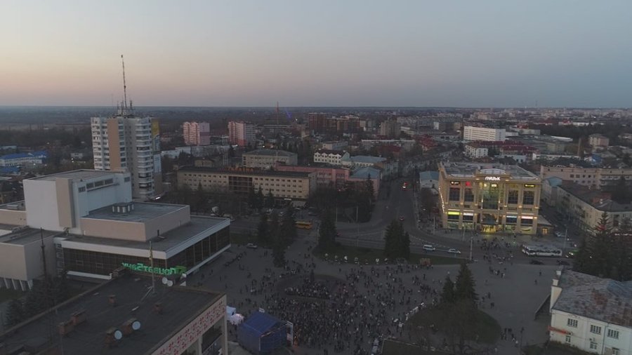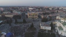Глядачі заповнили половину головного майдану міста. Також в об'єктив потрапили будівлі на площі.