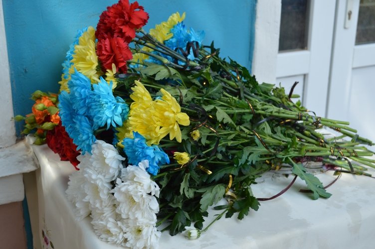 Представники духовенства Української православної церкви КП освятили меморіальний знак. Присутні поклали живі квіти.