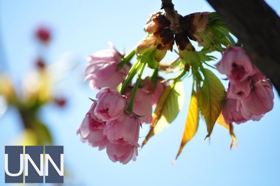 Рожеві квіти з′явилися на сакурах у різних куточках міста, - пише УНН.