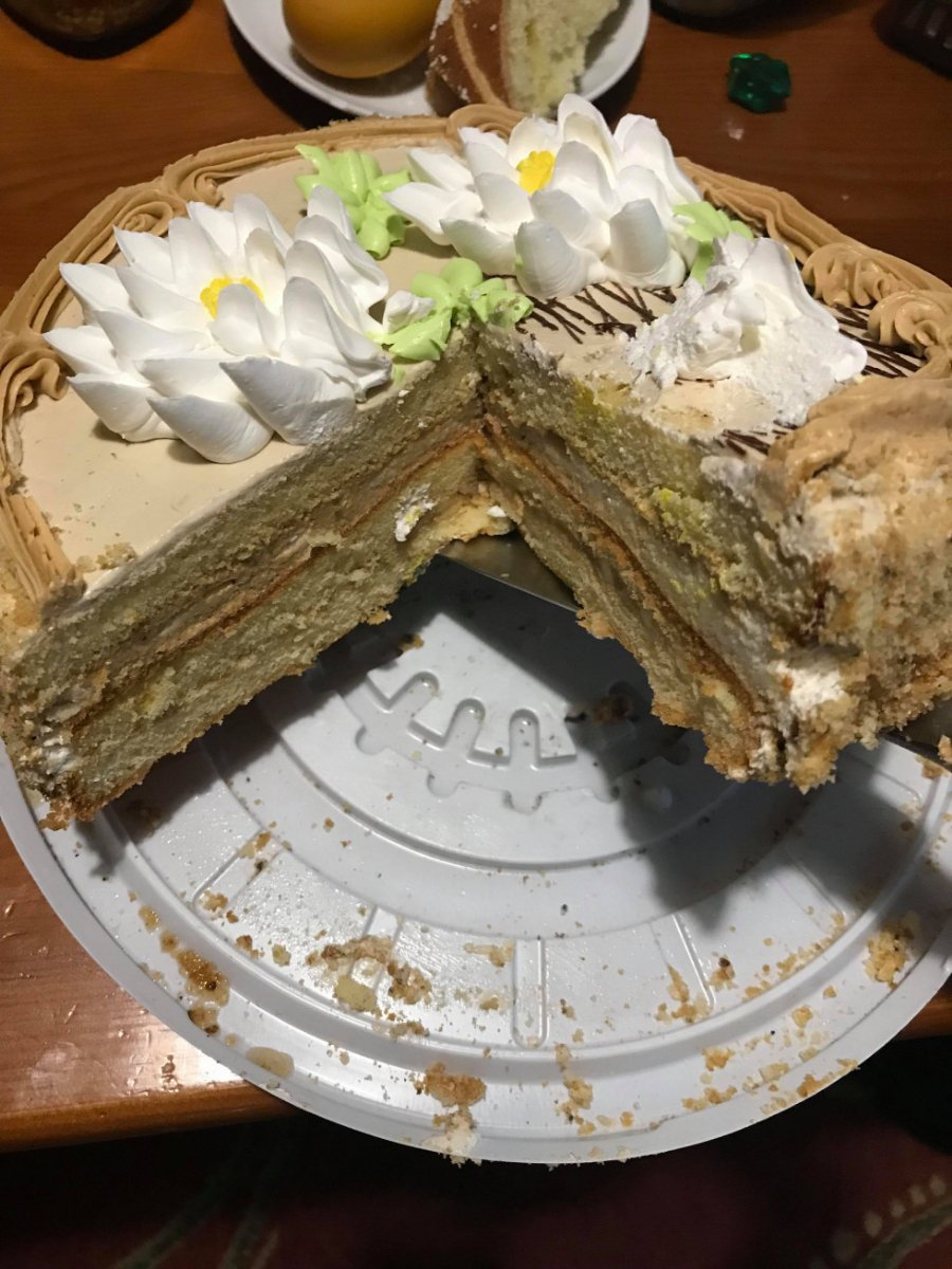 Як можна побачити на фотографіях, торт «Лілея» зверху виглядає абсолютно нормально, але якщо перевернути кондитерський виріб, то можна побачити плісняву.